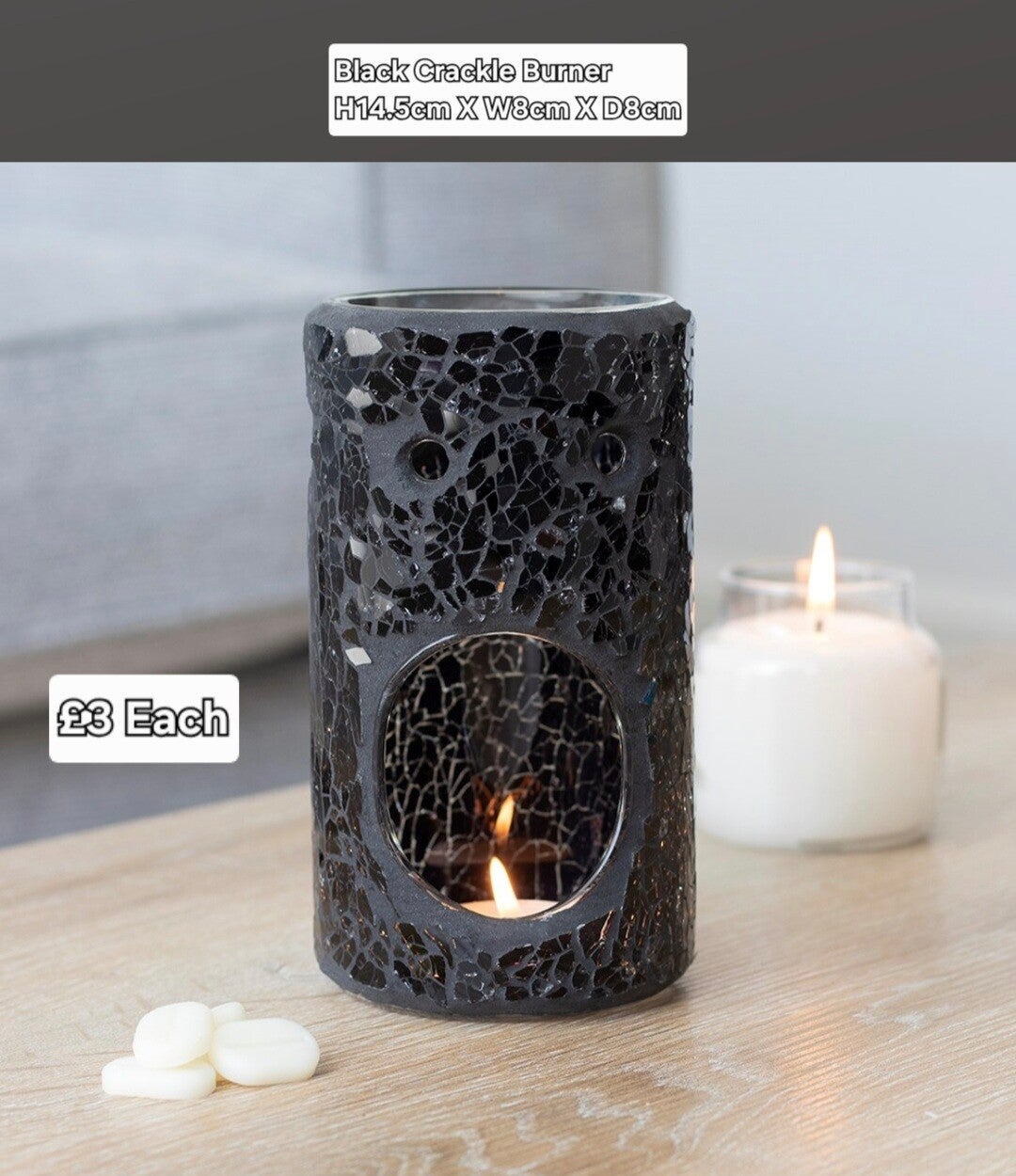 Black Pillar Crackle Glass Tealight Burner